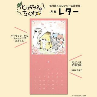 カレンダーの定期便『月刊レター』に「化けギツネのちくわ」4月カレンダーが登場!